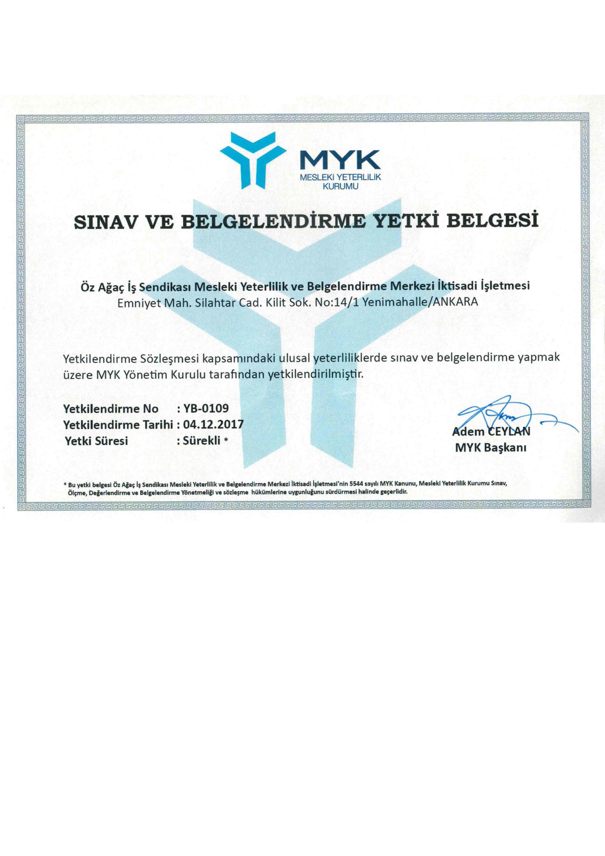 MYK Yetki Belgesi