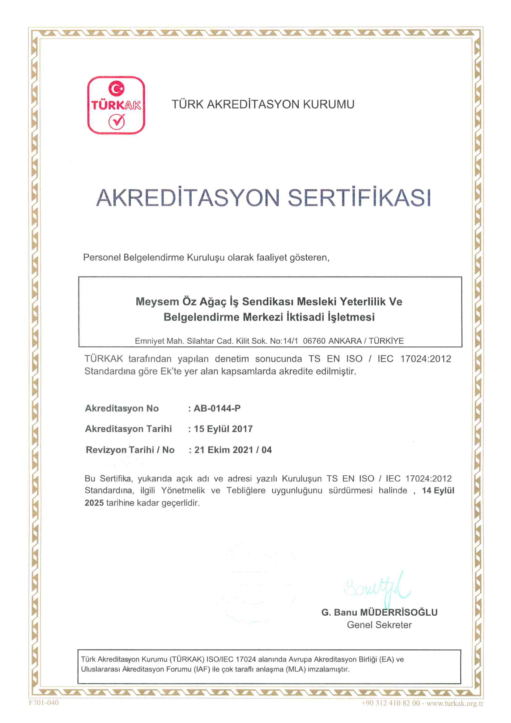TÜRKAK Akreditasyon Belgesi