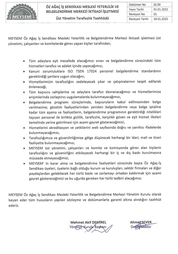 Üst Yönetimin Tarafsızlık Taahhüdü